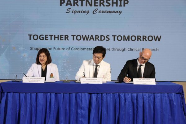 The MOU, titled “Together Towards Tomorrow: Shaping the Future of Cardio-Metabolic Care Through Clinical Research,” was signed at Thammasat University Hospital, a prominent institution located in the suburbs of Bangkok, marking a significant extension of collaboration between the organisations. The MOU was signed at the time when Thailand is witnessing a rising number of individuals living with cardio-metabolic diseases—with an estimation that over 45 percent of Thai individuals are classified as overweight or obese[i] and that there are at least 6.1 million people living with diabetes in Thailand[ii]. The two non-communicable diseases (NCDs) pose not only a significant public health challenge but also a growing economic concern.